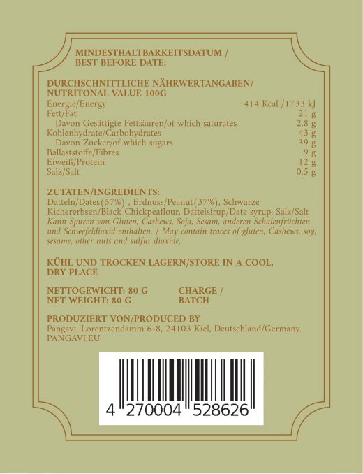 Gebaut auf Kichererbsen, Datteln und echter Erdnussbutter. Leicht gesalzen. Süß, salzig, satisfying.